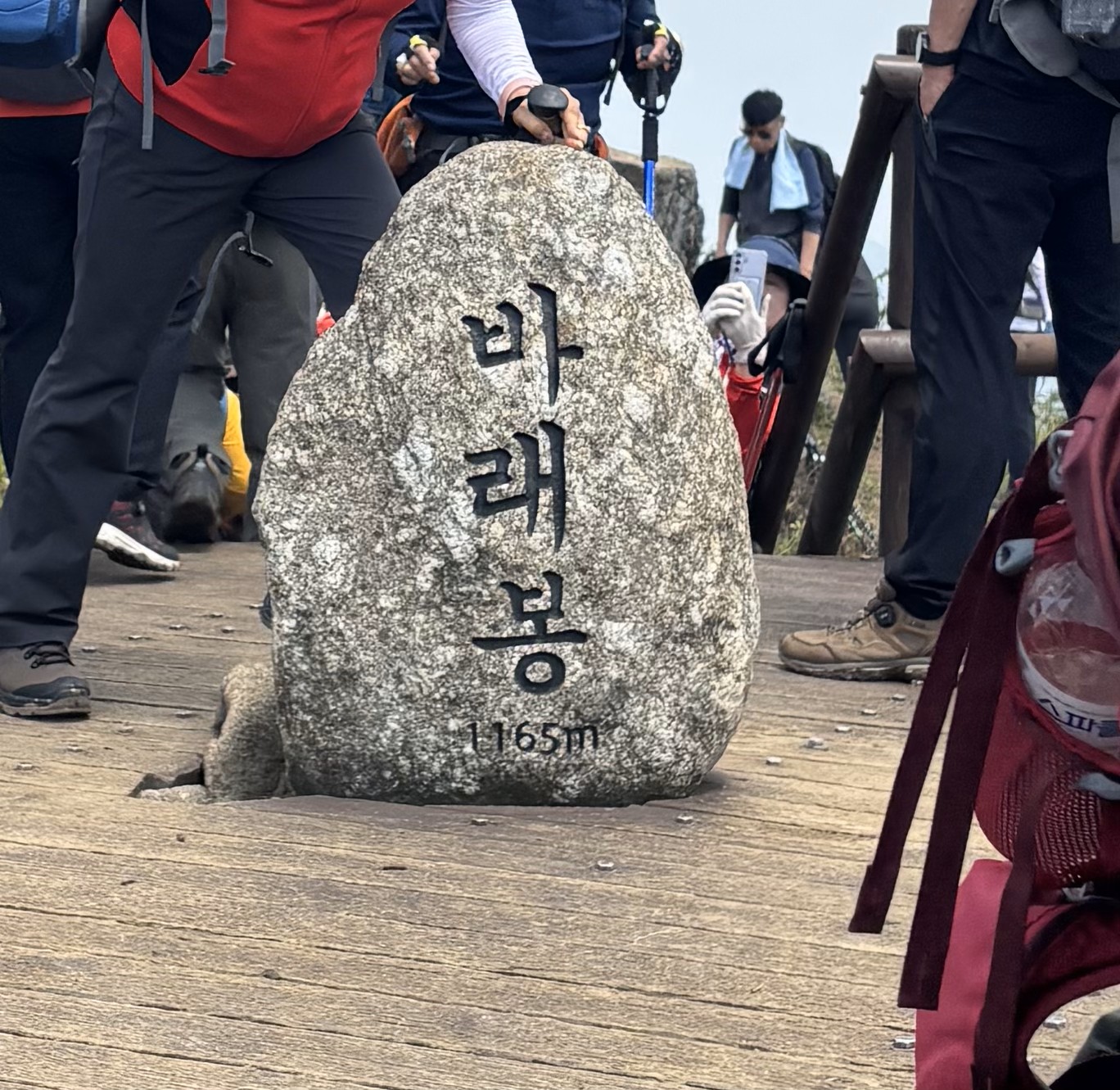 지리산 바래봉 인증석 대기줄 이건 하산할때 찍은건데 이 사진에 보이는 두배의 인원이 인증사진을 찍기 위해 대기중이었고